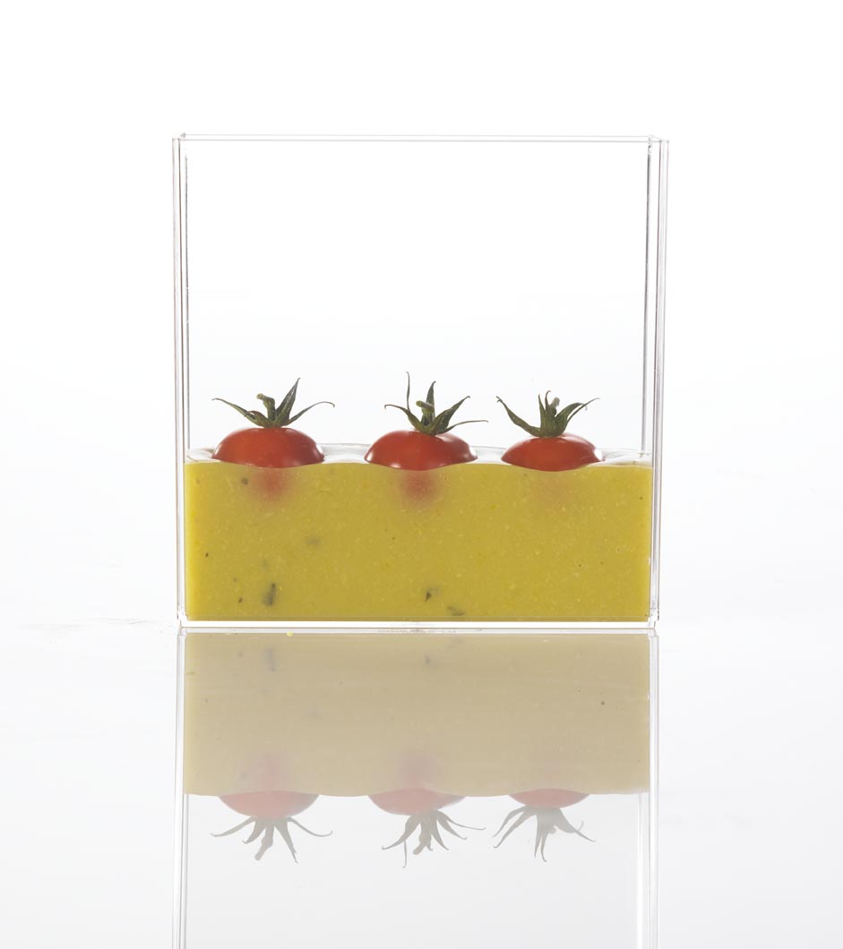 La cuisine verticale, vous vous souvenez de cette « tendance » … l’idée étant d’utiliser le même matériel pour toutes les cuissons ! …gains d’espace et d’investissement en quelque sorte… Maintenant , il semble que l’art de se positionner dans l’espace est en phase de vulgarisation ! Enfin, quand je dis vulgarisation le terme est mal choisi car nous sommes face à une innovation de Philippe Picquette , une vraie innovation comme on dit ! Le concept n’est pas remis en cause, il faut souvent dans un monde civilisé un contenant pour présenter la nourriture, c’est l’art de la table ! Mais quand les mets décorent l’assiette qui elle disparaît par sa transparence , on est dans un autre univers.